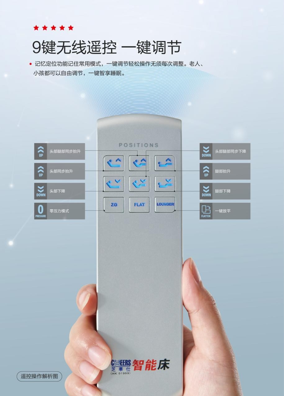 创新6大智能模式,贴心满足各种睡眠生活场景需求,更支持12键无线遥控,让您在多姿多彩的生活中无缝切换。
