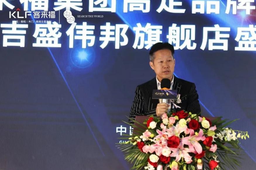 吉盛伟邦总经理徐晋烈表示:感谢现场朋友的支持,相信客来福集团高定品牌 ·革物·广州吉盛伟邦旗舰店的开业将迎来高质量发展。