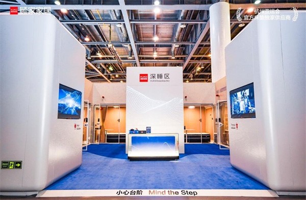 另外此外,基于整体睡眠理念,顾家家居在亚运会主媒体中心特别搭建了打造“四觉一感”深睡舱,打造了沉浸式睡眠空间,为媒体记者和工作人员全方位提供深睡保障服务。在深睡舱中不仅有床、垫、枕三位一体的整体睡眠产品,还从睡眠色系、温度、声音、材质等各个维度上打造了沉浸式睡眠空间。在这里可以感受到钱塘江的潮水声、西湖的风声、龙井茶的茶香,还有顾家工作人员细心周到的服务。因此,顾家深睡舱一经亮相便成为主媒体中心的焦点,受到众多媒体记者的关注和点赞,还登上央视新闻、新华社、中新社等权威媒体。